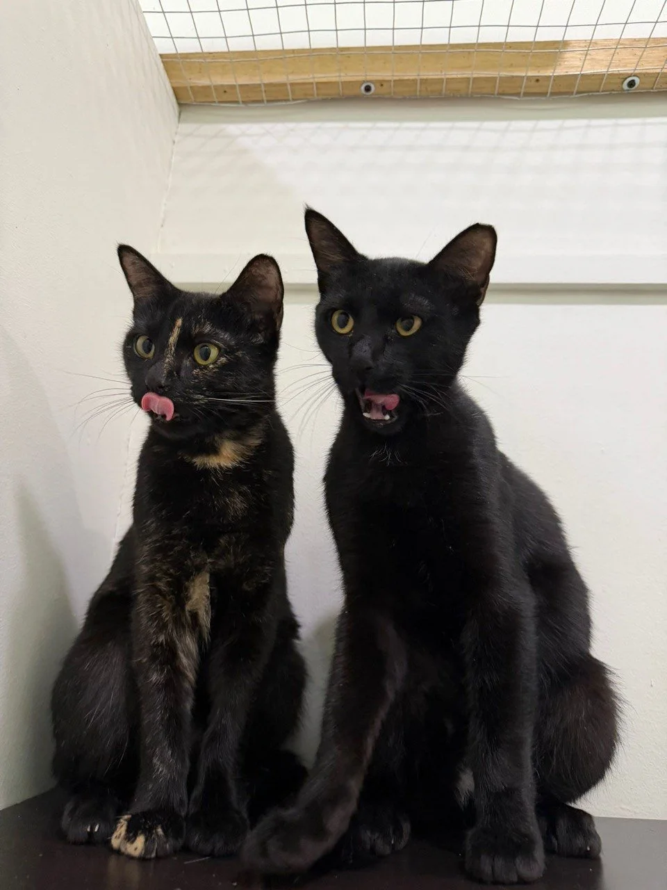 Identifying traits: Mochi is the tri-coloured cat and Taffy is the tabby.