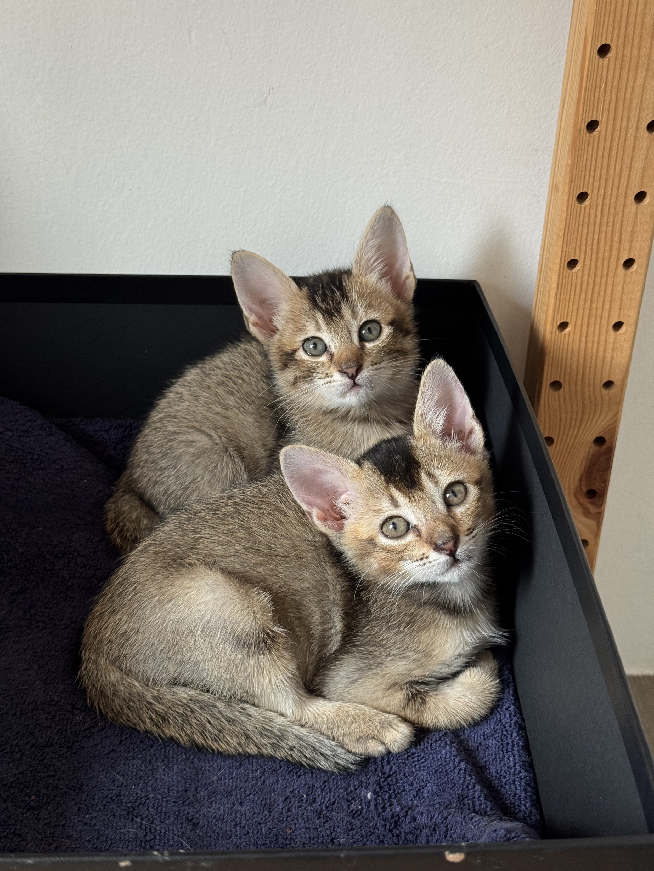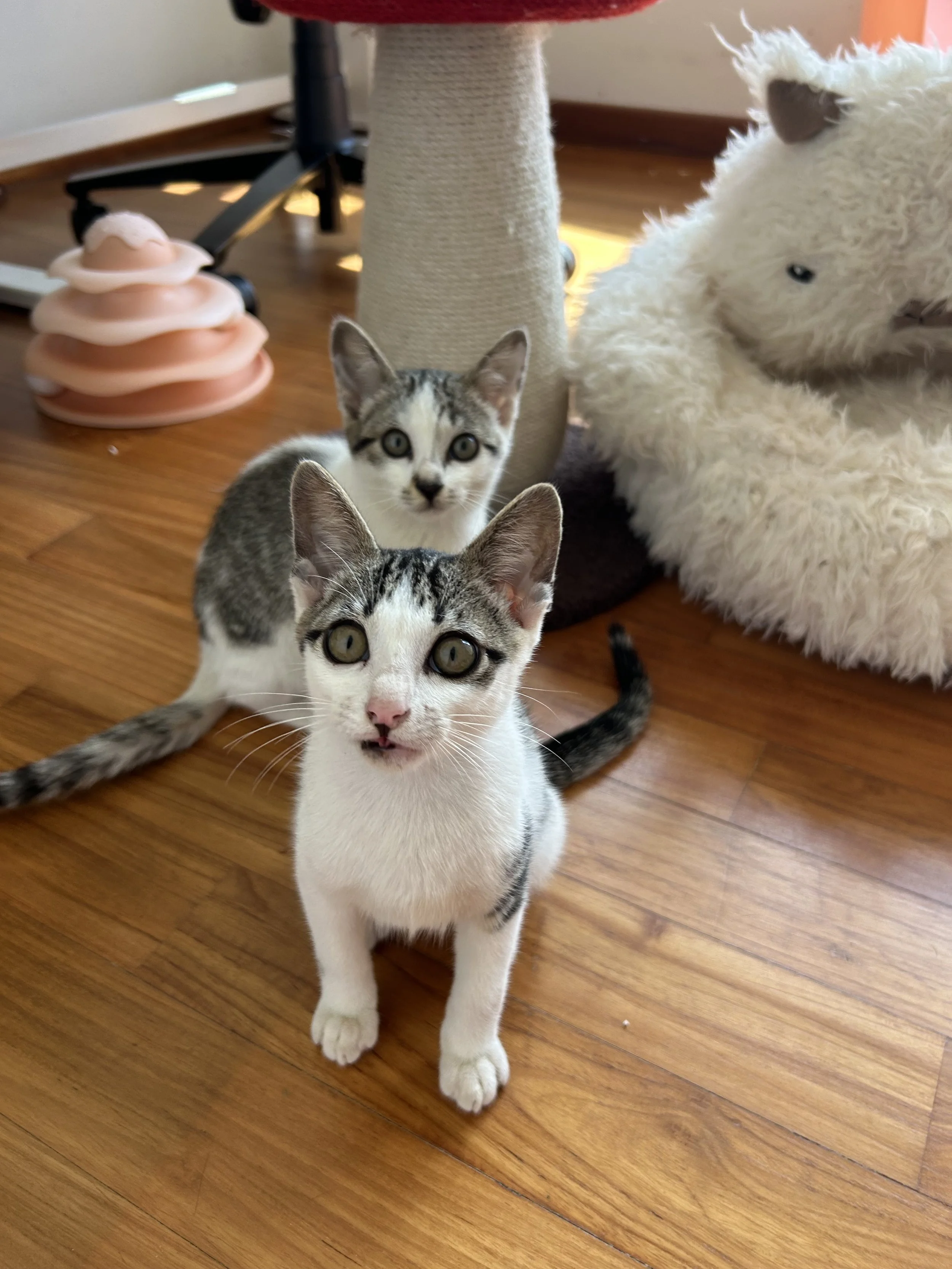 Ideal home: Must be adopted together. May be able to live with one other friendly resident cat.