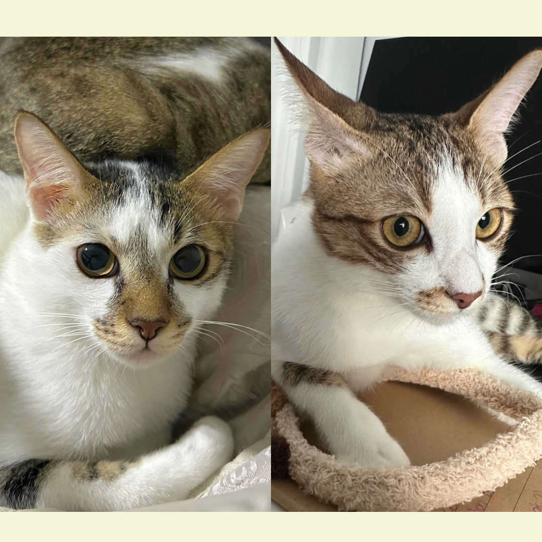Identifying traits: Mochi is the tri-coloured cat and Taffy is the tabby.